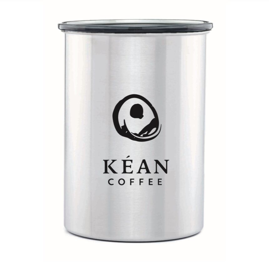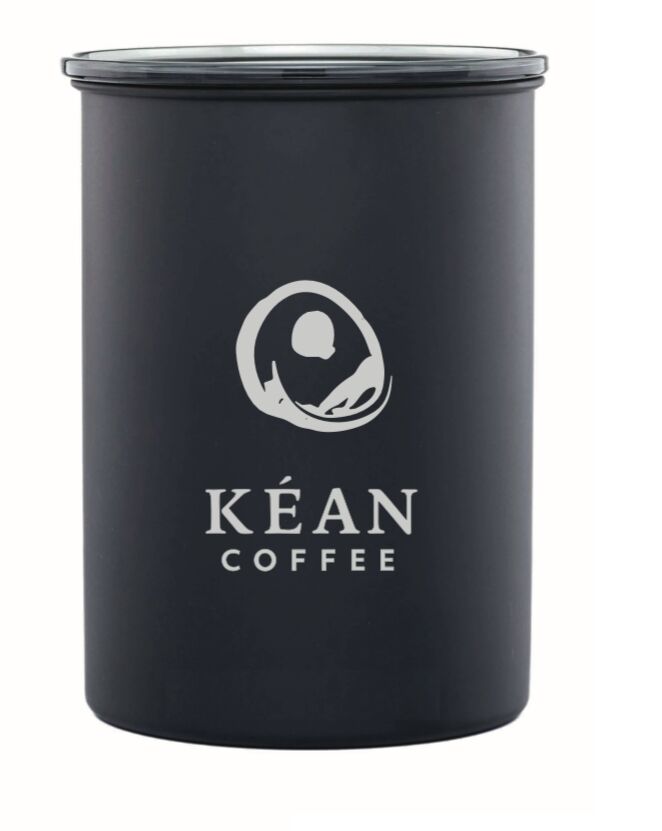 The Airscape Canister keeps fresh roasted coffee fresh longer with it’s inner vacuum lid, which forces the air out to create an oxygen-free interior. Perfect for coffee storage! 64 fluid oz capacity. 4 3/4″ base D. x 7″H, fits one 12 oz. bag of Kean Coffee perfectly. Available in a variety of colors!